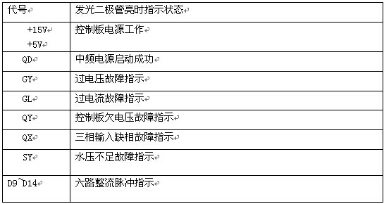 合控制電源開關(guān),控制變壓器得電,主控板得電,逆變脈沖板燈亮,電源指示燈亮。按主電路合閘,主接觸器吸合, 主電路得電。指示燈亮。再合中頻啟動開關(guān)。關(guān)機時由后向前依次進行。