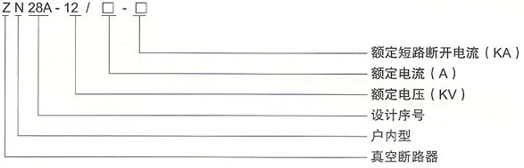 主流產(chǎn)品型號(hào)有:ZN28-12/630-20,ZN28-12/630-25,ZN28-12/1000-20,ZN28-12/1000-25,ZN28-12/1250-25,ZN28-12/1600-31.5,ZN28-12/2000-31.5,ZN28-12/2500-31.5