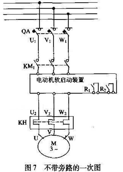 三、軟啟動器帶旁路接觸器接線圖